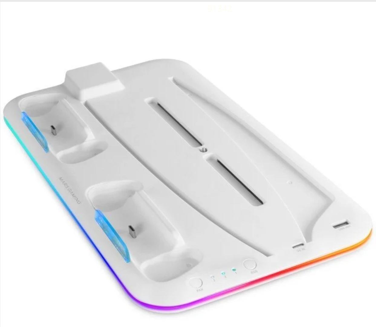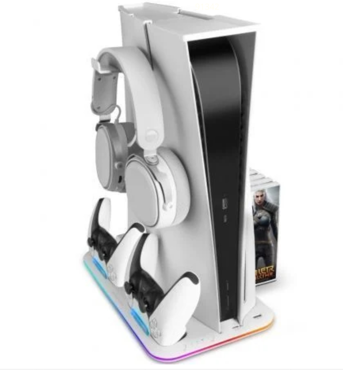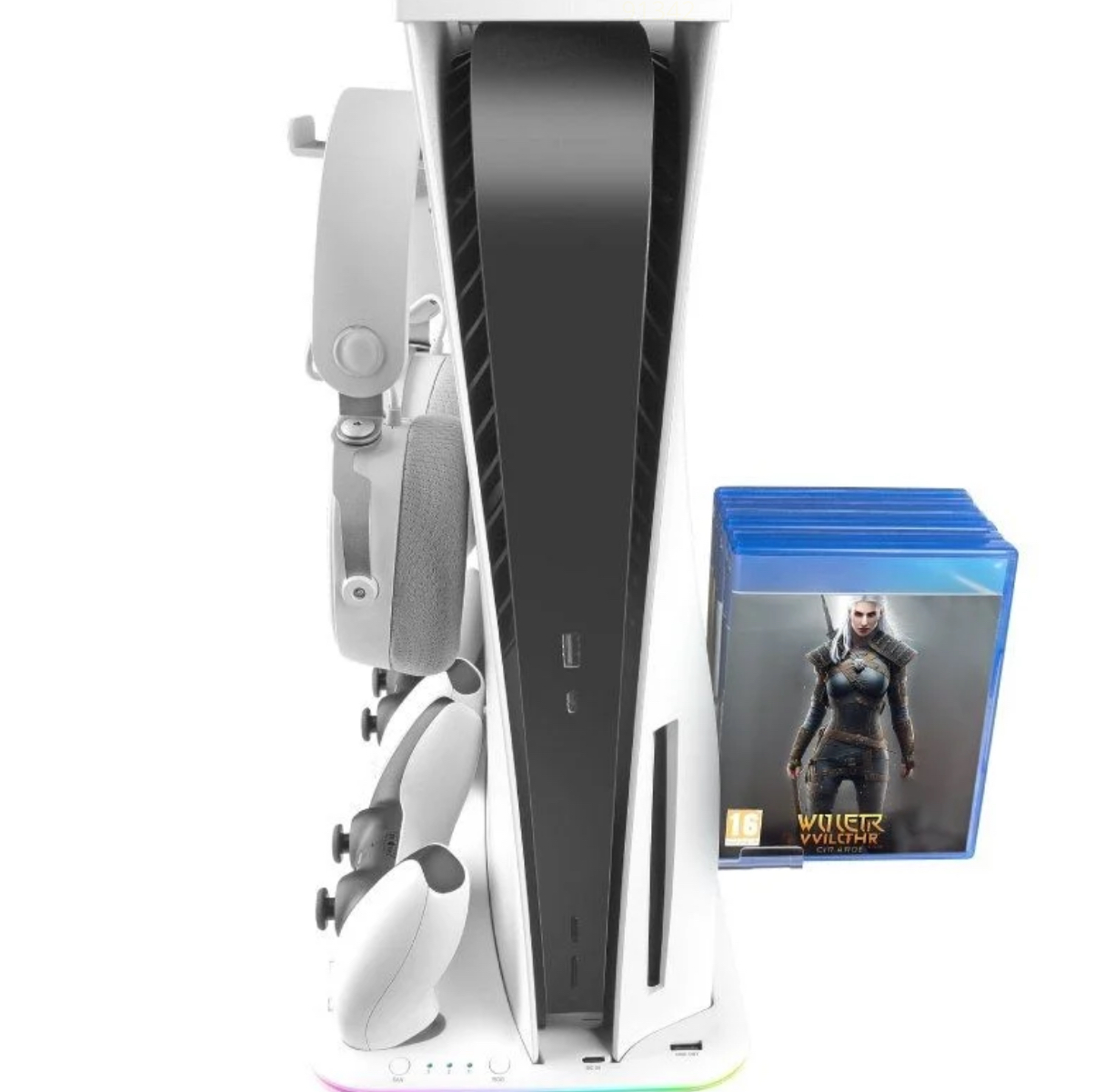 Combina refrigeração eficiente, carregamento para 2 comandos, suporte para auscultadores e armazenamento de jogos, garantindo que todos os seus acessórios estejam covenientemente localizados em um único lugar.