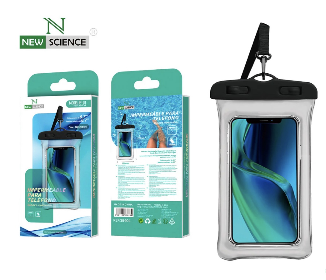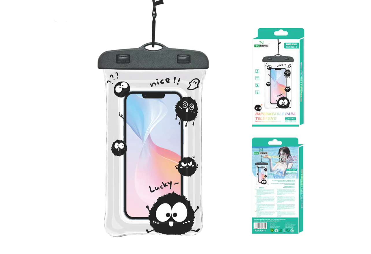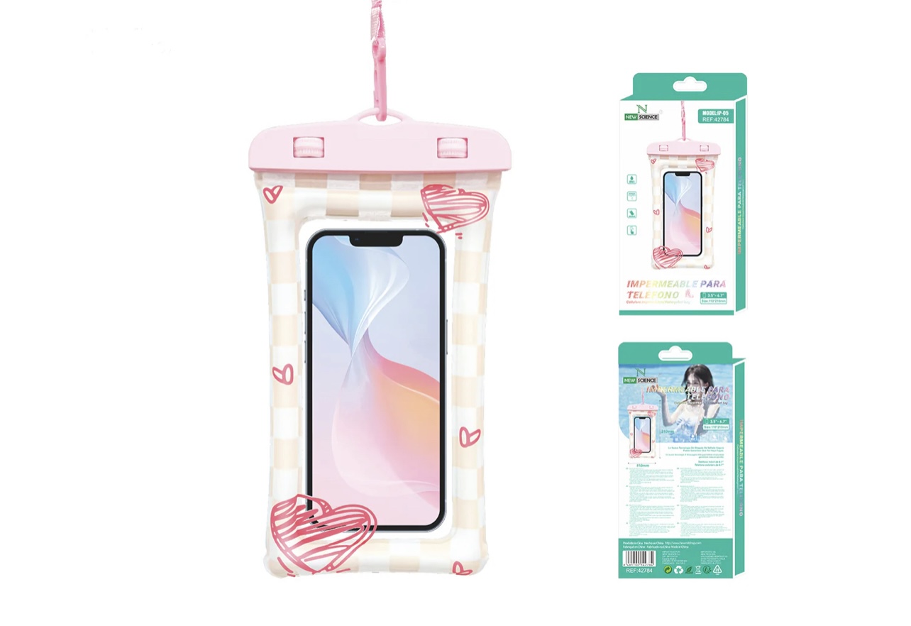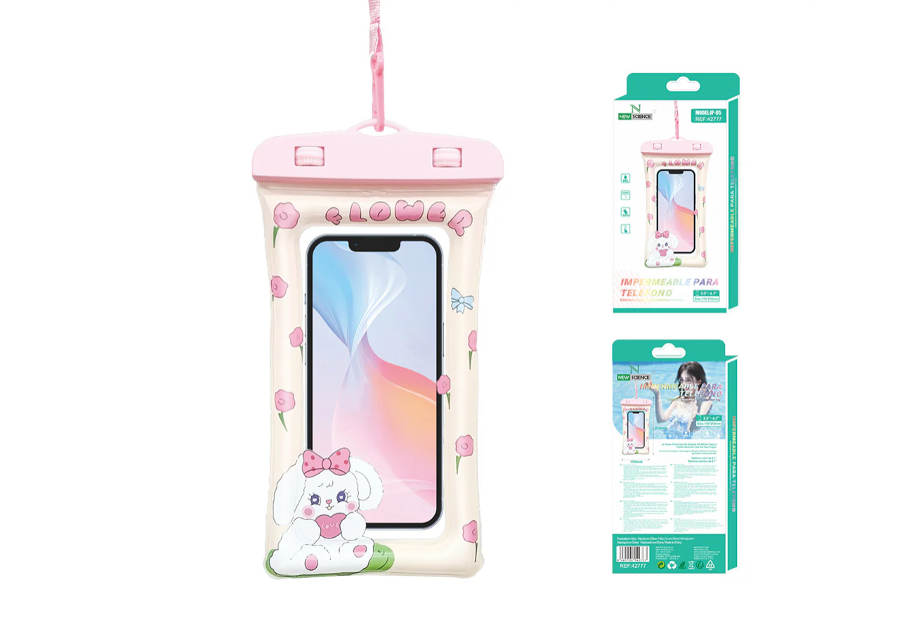 Proteja o seu telemóvel e objetos pessoais com esta capa impermeável, ideal para praia, piscina, viagens ou atividades ao ar livre. Compatível com telemóveis até 6,7”, também pode guardar cartões, dinheiro, passaporte, chaves e muito mais.