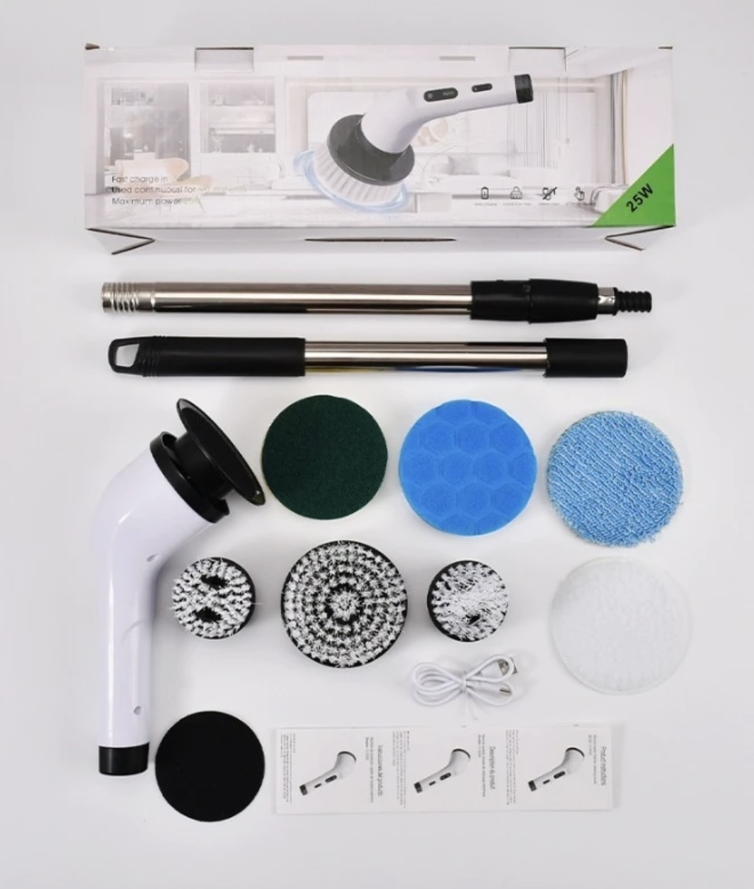 9 cabeças de limpeza incluídas – adaptam-se a várias superfícies