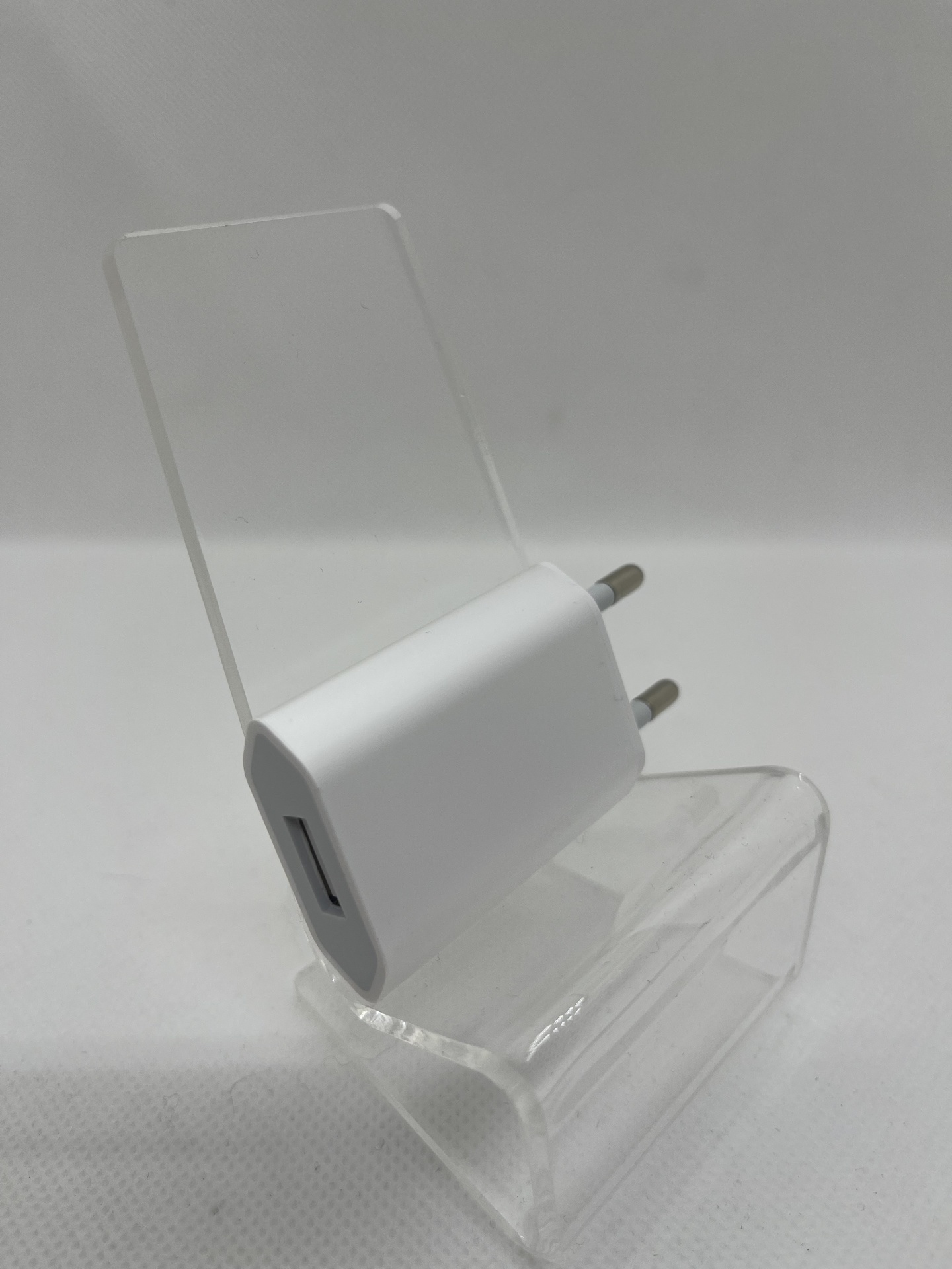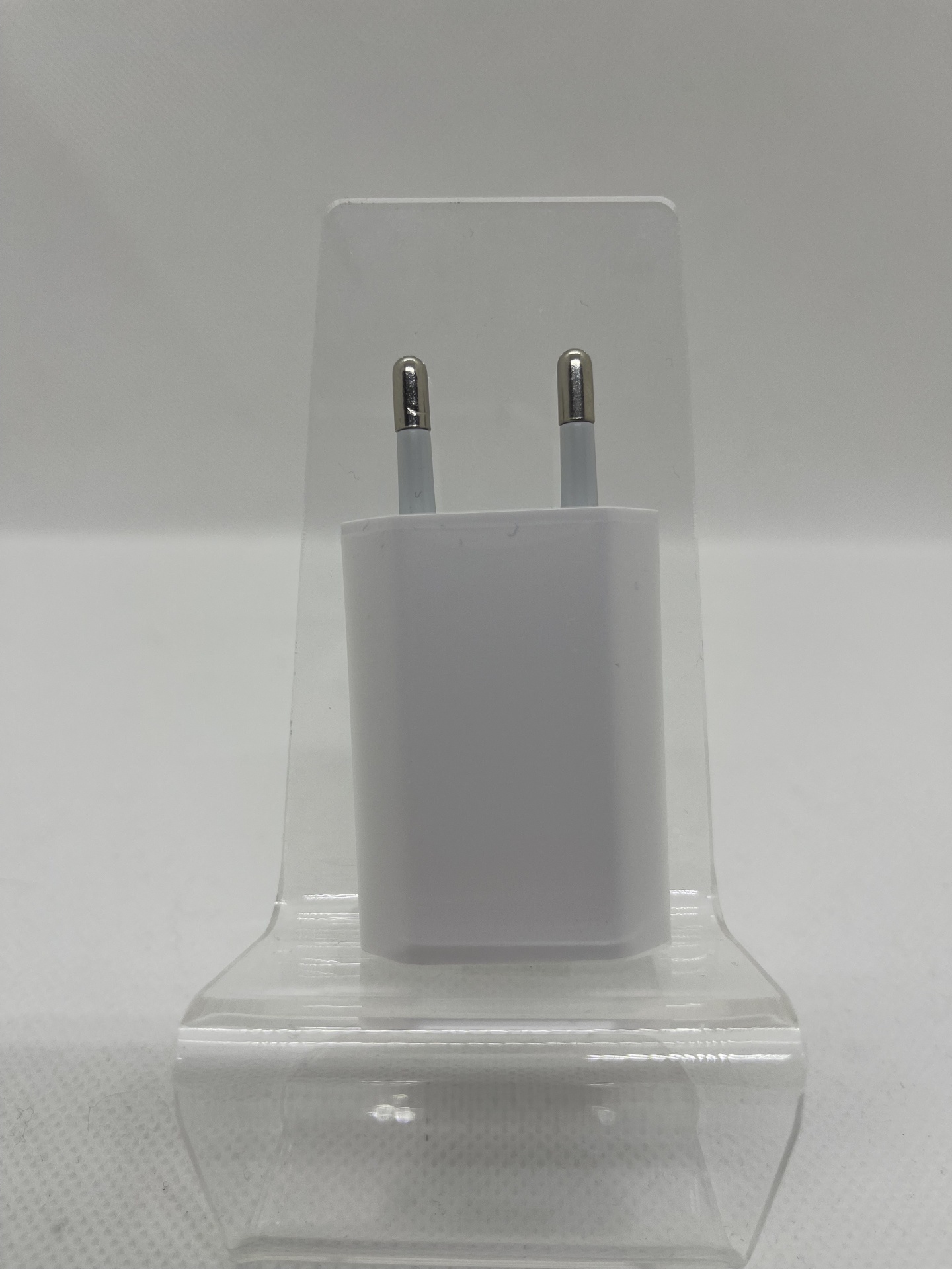 • Carregador de parede USB branco em suporte transparente