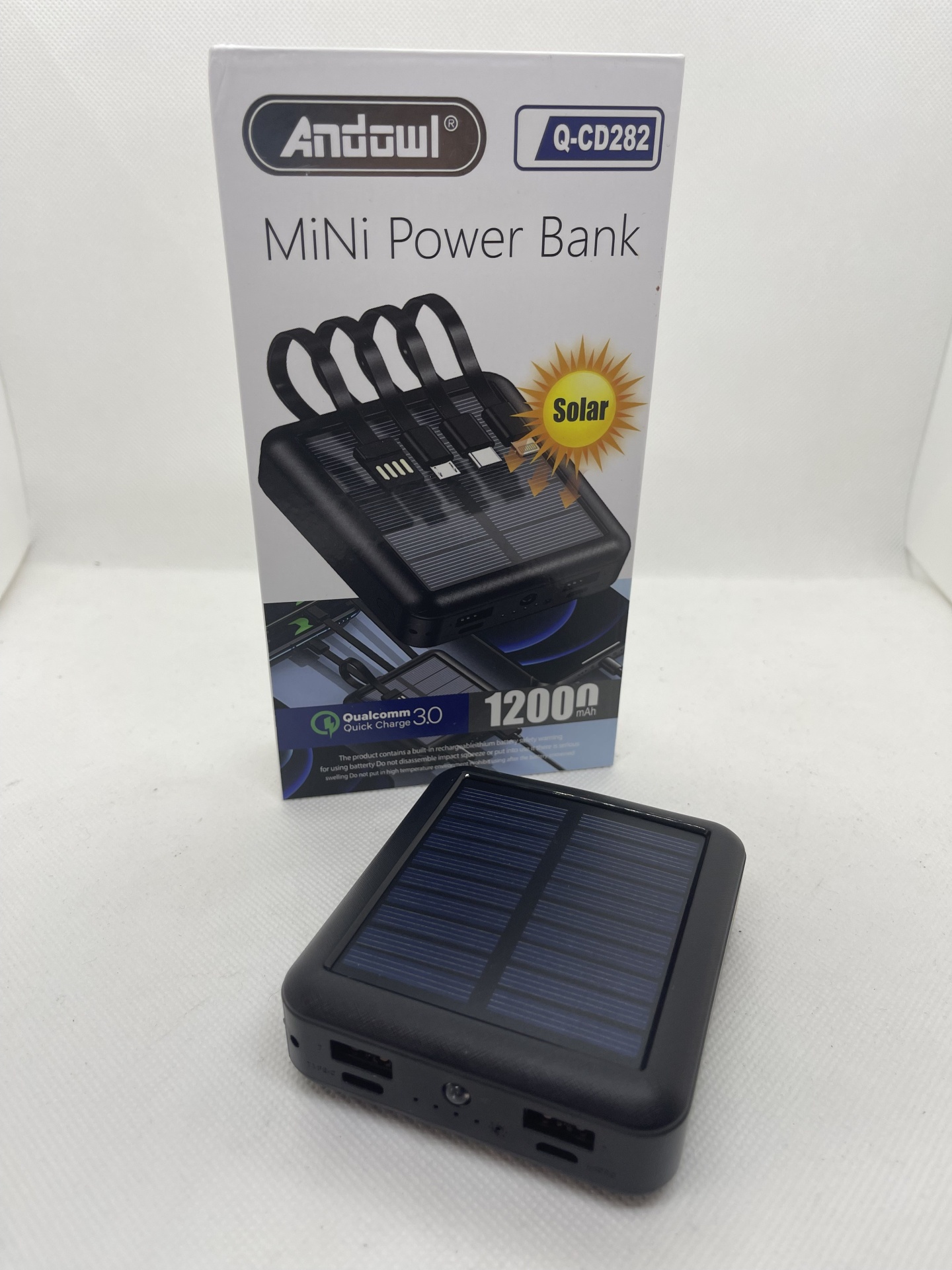 Powerbank Solar 12000mAh com Cabos Integrados – Energia Sempre à Mão, Onde Quer que Esteja