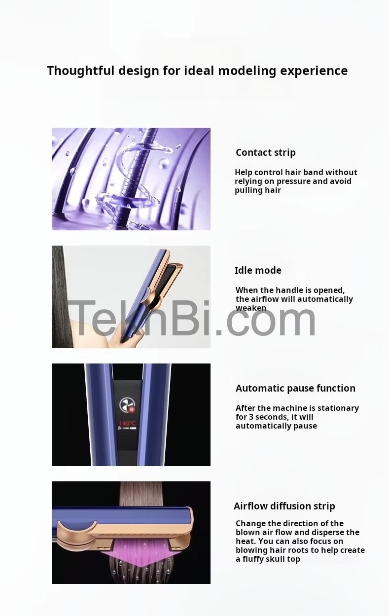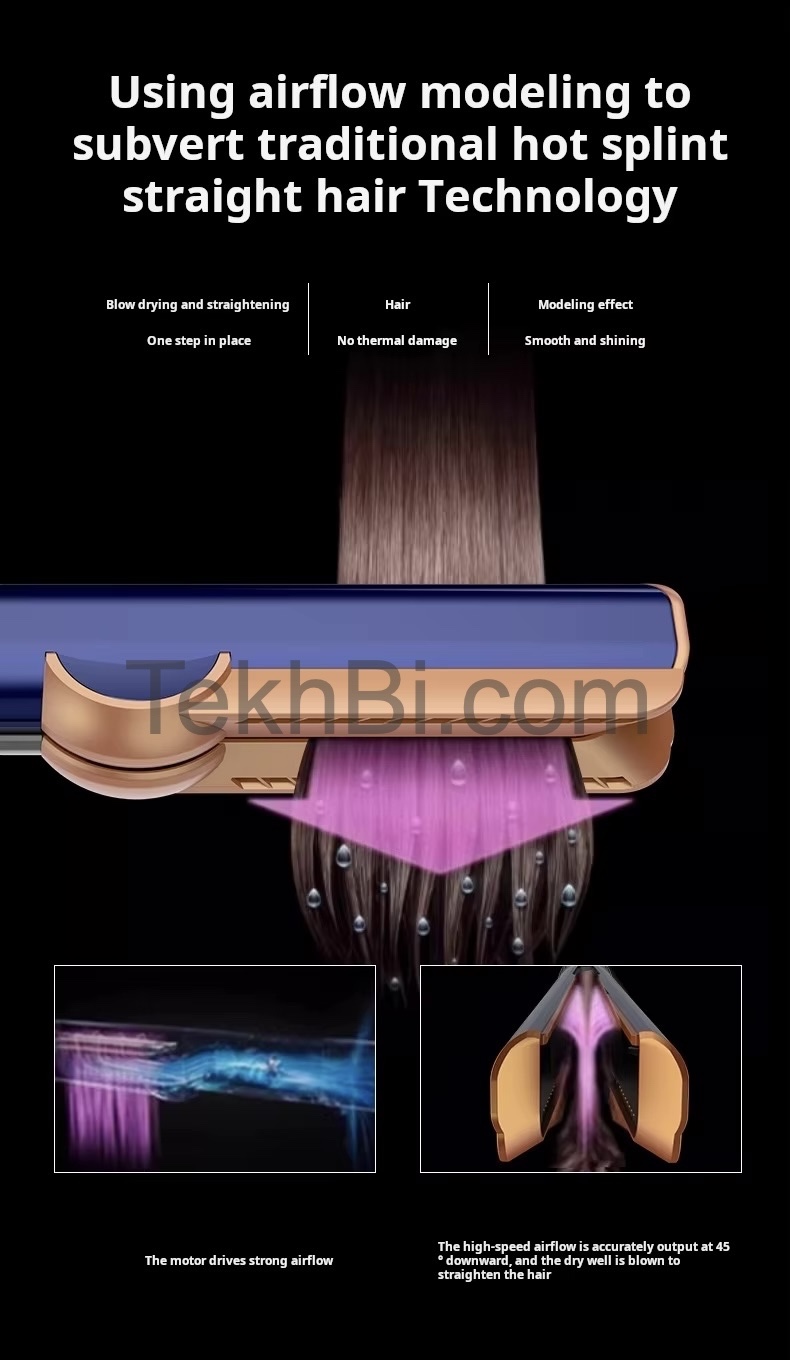 Graças à sua tecnologia de ar direccionado de alta precisão, este secador alisador permite-lhe secar e alisar o cabelo de molhado a seco num único passo — sem placas quentes e sem agredir a fibra capilar.
