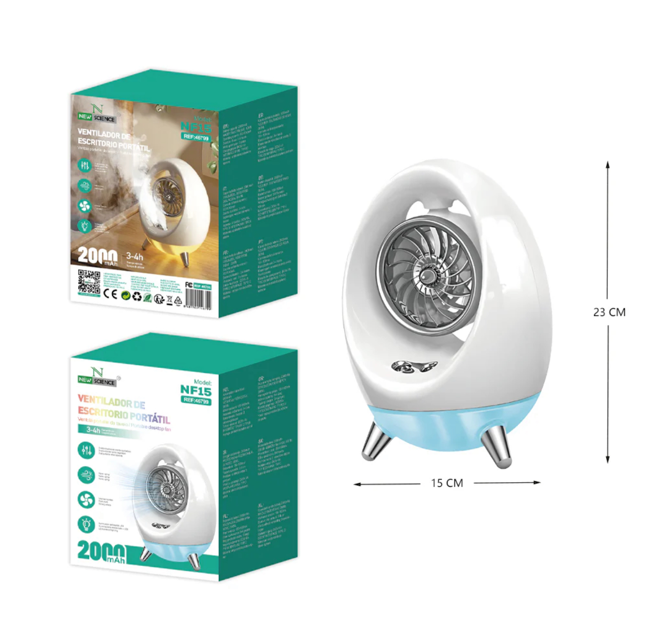Ventilador de Mesa Portátil com Luz LED e Reservatório de Água – Silencioso, Potente e Compacto